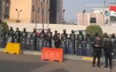 انتشر عناصر من القوات الأمنية والحشد الشعبي، يوم الأحد، أمام مقر اللجنة
