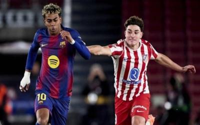 الإياب، حيث يقف كل من لامين جمال، وفيرمين لوبيز، وجيرارد مارتين، ومارك كاسادو